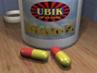 These pieces were created for fun, to be 'donated' to www.philipkdickfans.com as part of a planned site overhaul in the very dim and distant past, but the Ubik section never came to be updated and the graphics were never used. I am still rather partial to them, though, so they live on here.